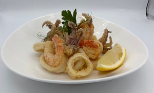 frittura mista di anelli di calamaro ciuffi e gamberi