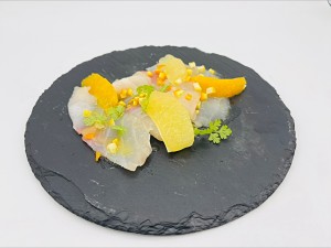 Carpaccio di Cernia marinata agli agrumi porzione consigliata 150gr