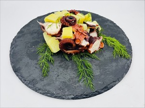 insalata di polpo senza pelle, selezionata la parte del tentacolo
