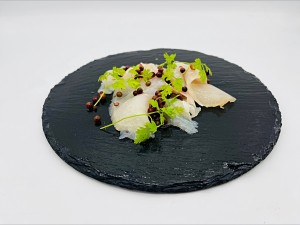 Carpaccio di Ricciola marinata al pepe rosa porzione 100g ca.